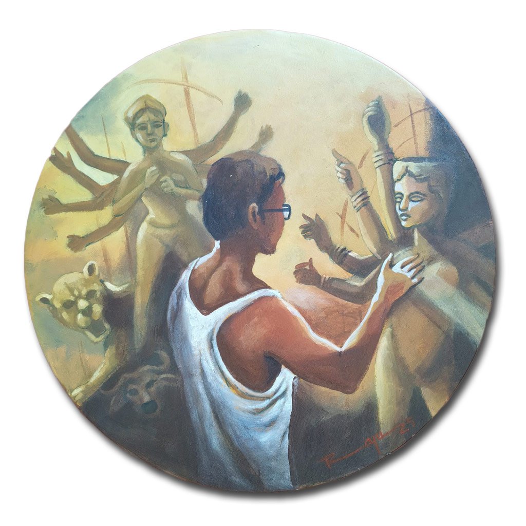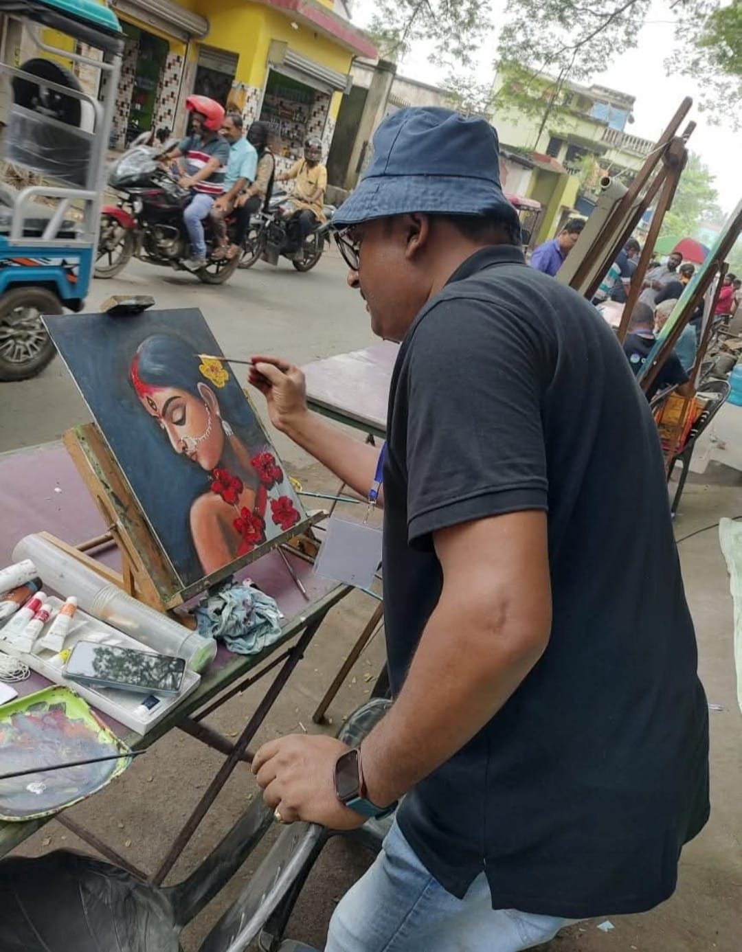 A government school teacher of Mathematics by profession, Raju Pramanik finds Art as his power to fight this chronic ailment. He started his painting journey with watercolor and gradually moved to acrylic and oil as his medium.