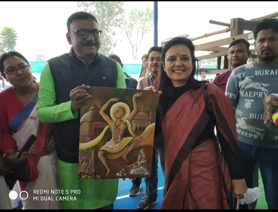 Raju Pramanik performed a live painting in one of the meetings of the Honorable Chief Minister Mamata Banerjee. Honorable MP Mahua Moitra collected this painting.